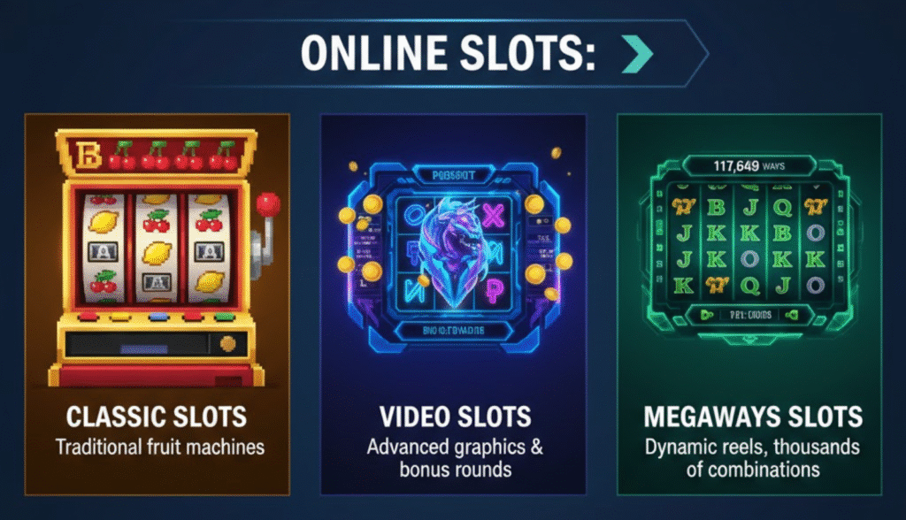 - Megaways slots providing dynamic reels with thousands of possible winning combinations.